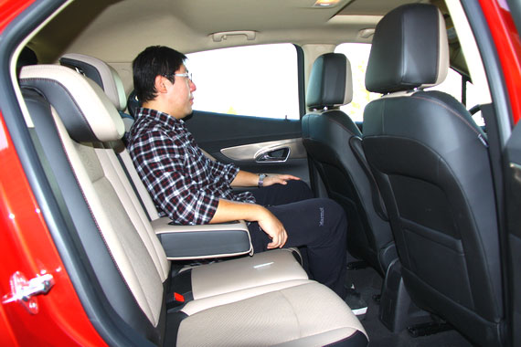 7.5分 (6-7.9分:合格)昂科拉的空间刚刚好,后排腿部空间大概有一拳多,平时坐四个人很宽松,不过车内横向空间不是太理想,后排坐五个人会有点挤。整车储物空间非常丰富,方便日常驾驶需要。后备箱空间与一般两厢轿车相差不大,但高车身可以放下较大物体。